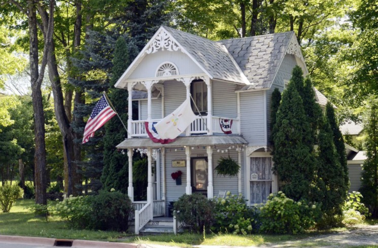 The scene is familiar since it has been featured in magazines, calendars and even advertisements throughout Northern Michigan. The cottage is exactly as the local carpenters designed and built it in 1887. Same footprint. Same proportions. Even the blue gray color dates back to the early 1900s.